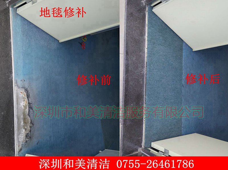 深圳市和美清潔服務(wù)有限公司 0755-26461786 常年承接;深圳南山 福田 寶安 羅湖 布吉 龍華 光明新區(qū)家庭 寫字樓 廠房 公司 店鋪 酒店 店鋪 辦公室 展會(huì) 展廳 會(huì)所 美容院 臺(tái)球館纖維地毯、圈絨地毯、割絨地毯、機(jī)織地毯、簇絨地毯、尼龍地毯、丙綸地毯、羊毛、腈綸、混紡地毯修補(bǔ)。一般寫字樓、辦公室、臺(tái)球館地毯修補(bǔ)的比較多而且面積廣而雜。因?yàn)檫@些地方公共人口流動(dòng)大,踩踏平凡。特別是女性的高跟鞋最容易踩壞地毯的接口處。一般往往如果不是太麻煩客戶都愿意重新?lián)Q新地毯,可是辦公地方卡位多、配電布線密集,更換時(shí)費(fèi)事費(fèi)力,影響上班時(shí)間。在沒有選擇的條件下才進(jìn)行修補(bǔ)。